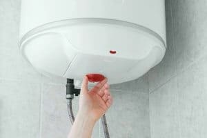 a person adjusting temperature of a water heater